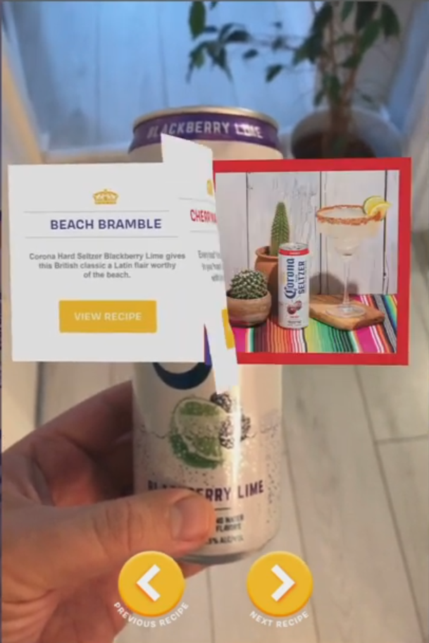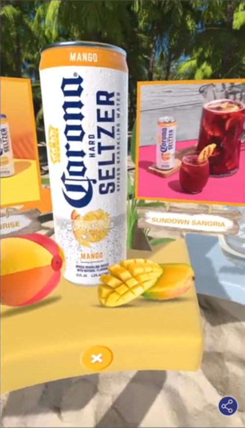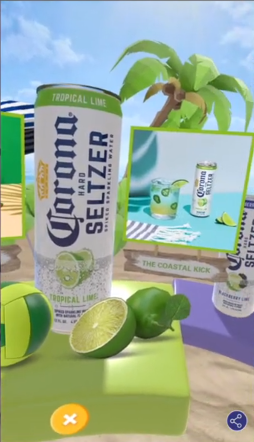 Corona invited users on an island getaway in celebration of the brand’s new Hard Seltzer flavours. Upon entry, this AR paradise portal presented an array of new drink options, alongside cocktail recipes to try at home – with the benefit of linking to purchase opportunities.